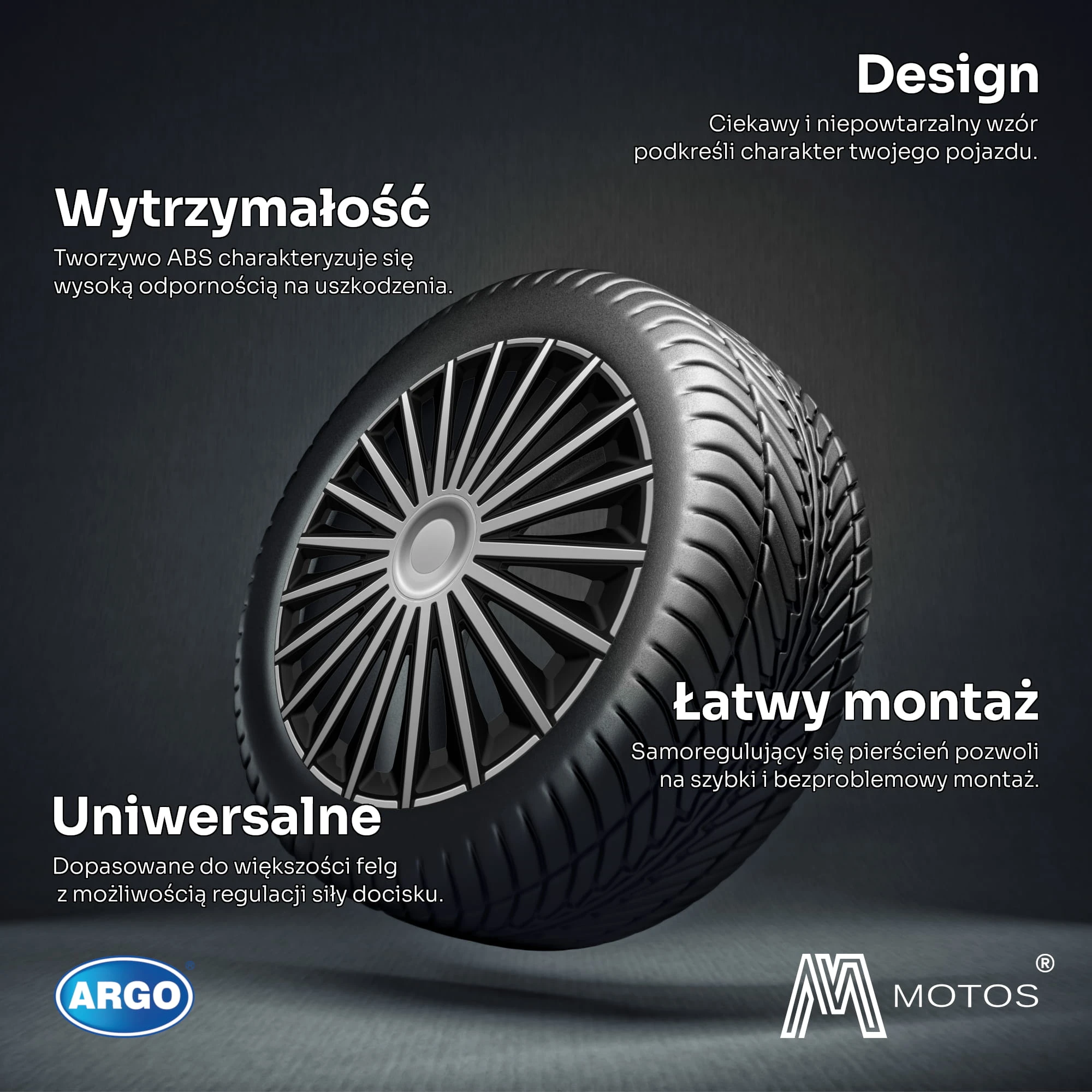 Argo to marka znana od wielu lat. Unikatowy design – od klasycznych aż do modernistycznych kształtów oraz staranne wykonanie na każdym etapie produkcji wraz z przystępną ceną powoduje, że kołpaki te cieszą się ogromną popularnością wśród klientów.
