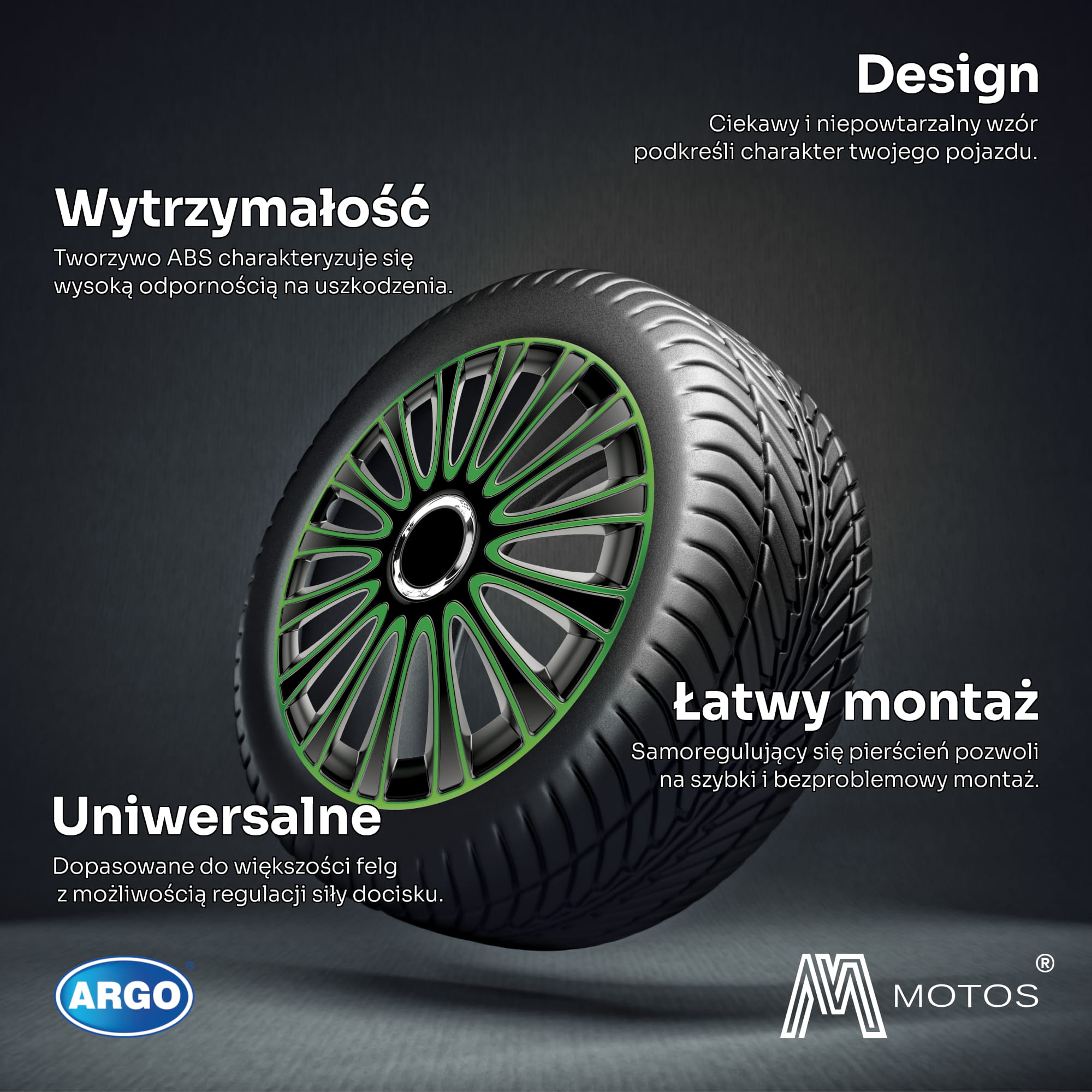 Argo to marka znana od wielu lat. Unikatowy design – od klasycznych aż do modernistycznych kształtów oraz staranne wykonanie na każdym etapie produkcji wraz z przystępną ceną powoduje, że kołpaki te cieszą się ogromną popularnością wśród klientów.