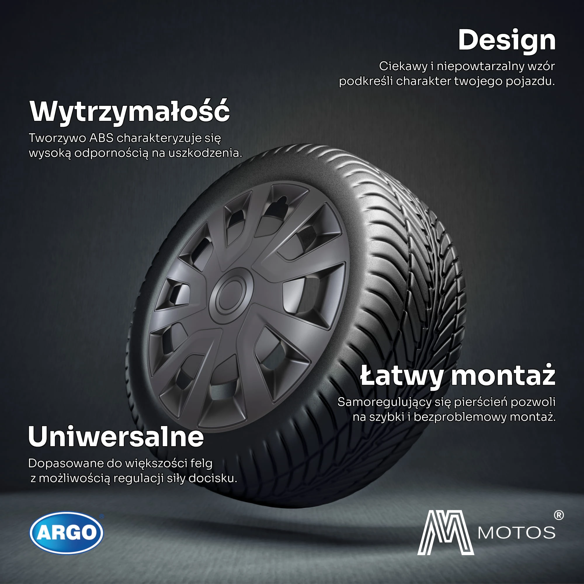 Argo oferuje szeroki wybór kształtów i kolorów kołpaków. Bez względu na to, czy preferujesz klasyczną elegancję, czy nowoczesny minimalizm - z łatwością znajdziesz zestaw idealnie pasujący do stylu twojego samochodu.